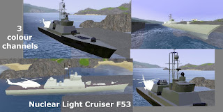 A harbour pier and a nuclear light cruiser F53. Both items found in Decor/Miscellaneous Decor, price is 0.