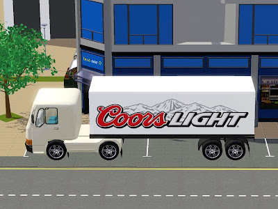 A new Coors Light beer truck found under Decor / Misc. Decor, costs 0. I've added mirrors and windscreen wipers to it. It's also 1 metre longer then the Alhambra or the Kronenbourg beer trucks. It has a set of Texas number plates. Use cheat moveobjects on to place the truck. You need Ambitions.